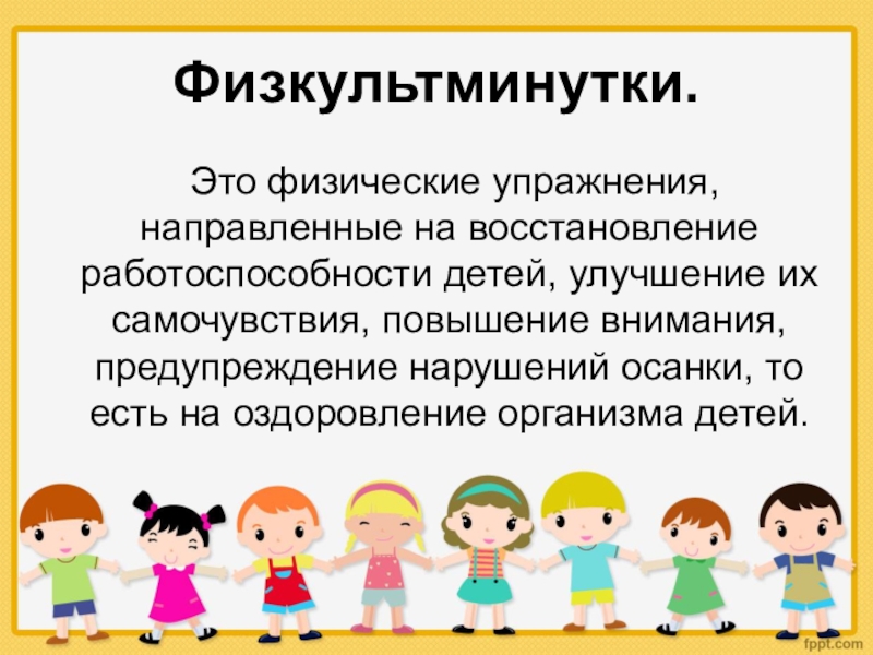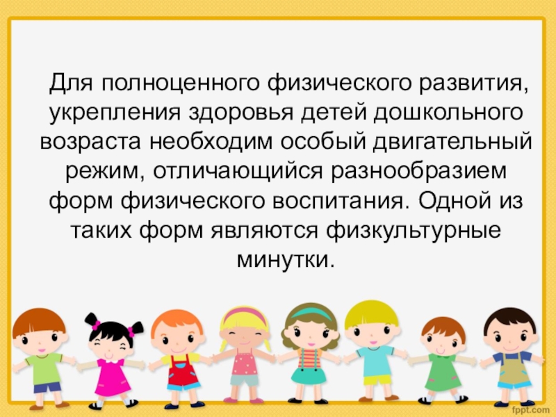 особый двигательный режим, отличающийся разнообразием форм физического воспитания. Одной из таких форм являются физкультурные минутки.