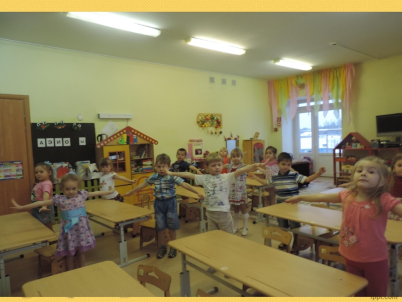 гимнастических упражнений в комплексы физкультурных пауз включаем малоподвижные игры. Упражнения подбираем по тому же принципу, что в физкультурных минутках, с той лишь разницей, что их количество увеличивается до 5 – 8 раз.