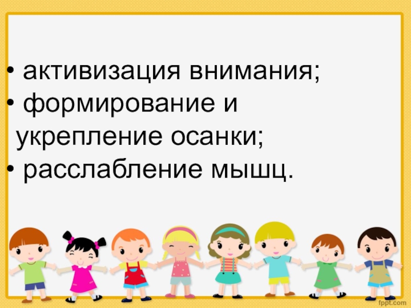 самочувствия, повышение внимания, предупреждение нарушений осанки, то есть на оздоровление организма детей.