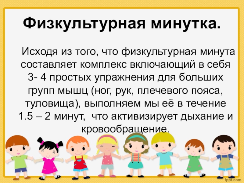 Исходя из того, что физкультурная минута составляет комплекс включающий