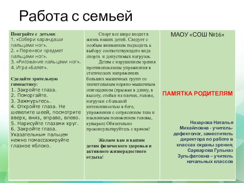Назарова Наталья Михайловна - учитель-дефектолог, заместитель директора по работе в классах охраны зрения;