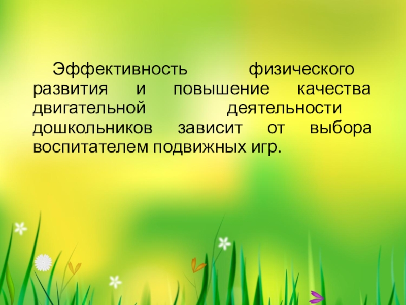 Подобный подход к игровому репертуару позволит максимально эффективно использовать подвижную игру в физическом развитии детей дошкольного возраста.