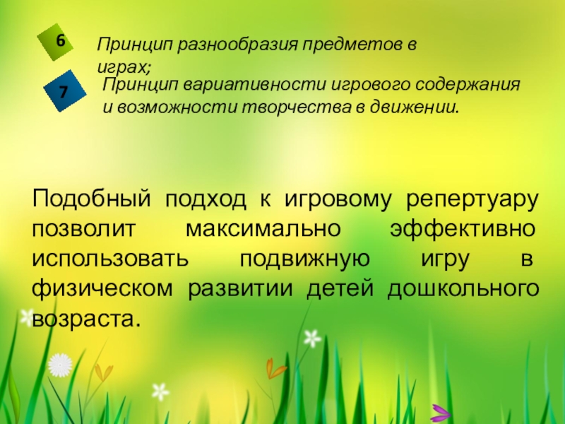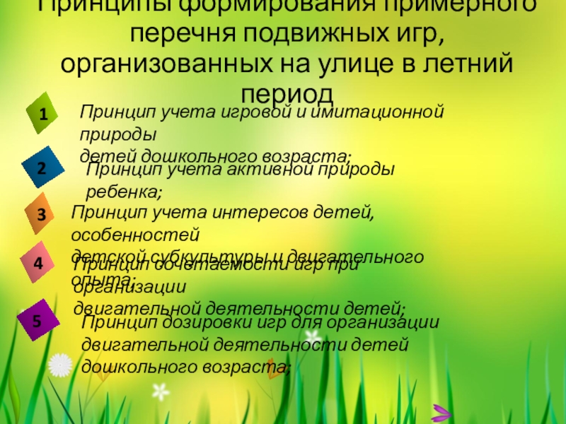 Слайд 18Принципы формирования примерного перечня подвижных игр, организованных на улице в летний