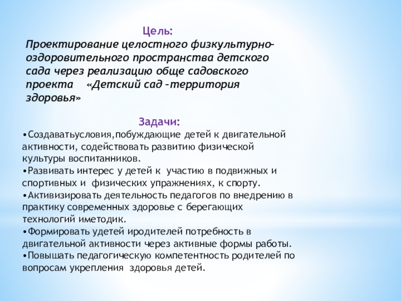 •Повышать педагогическую компетентность родителей по вопросам укрепления здоровья детей.