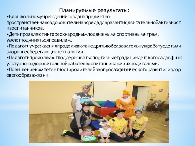 •Формировать удетей иродителей потребность в двигательной активности через активные формы работы.