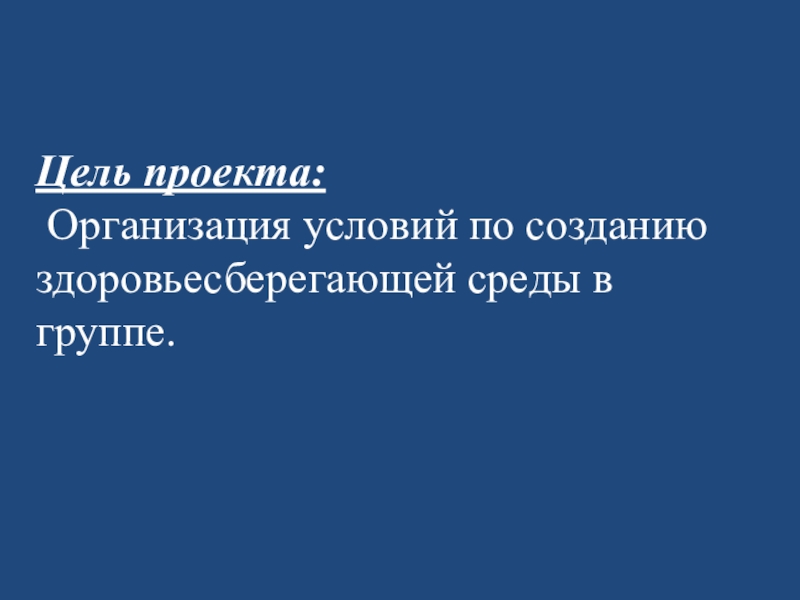 Цель проекта: Организация условий по созданию здоровьесберегающей среды в группе.