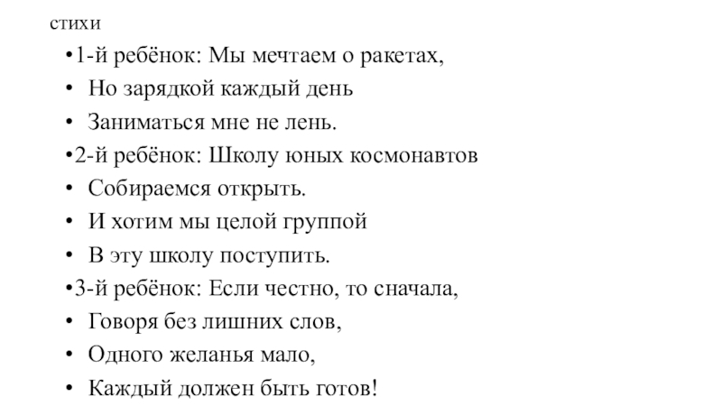 Ведущий: Эти качества нужны всем, кто собирается отправится в космическое путешествие.