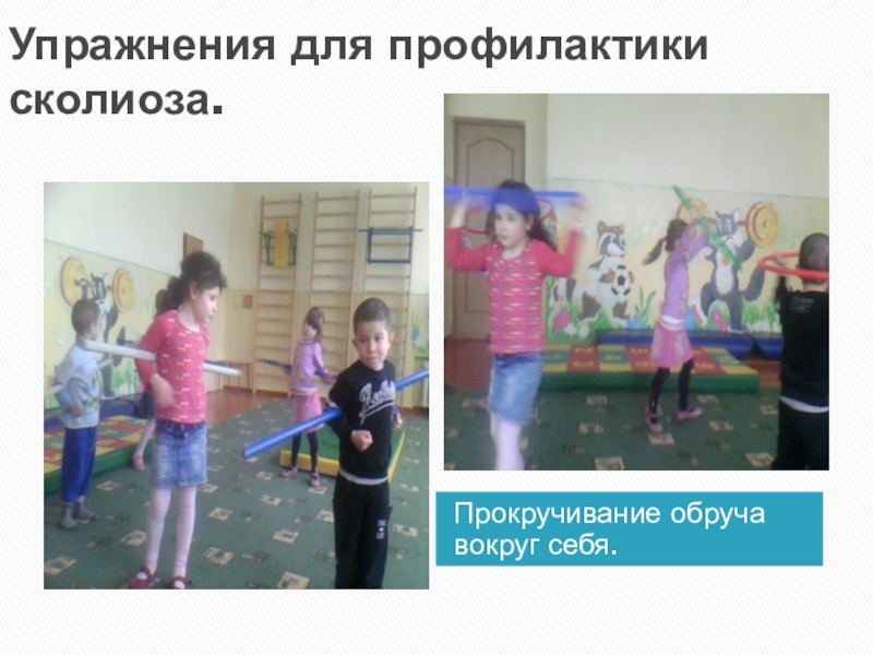 Упражнения для профилактики сколиоза. Прокручивание обруча вокруг себя.