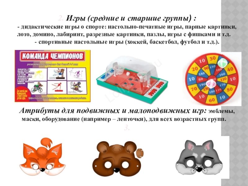 - игровыми пособиями.