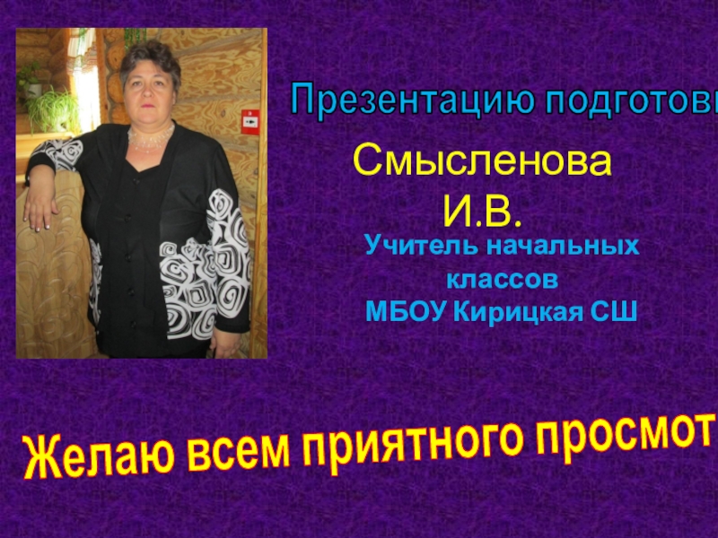 Презентацию подготовилаСмысленова И.В.Учитель начальных классовМБОУ Кирицкая СШ Желаю всем приятного просмотра!!!