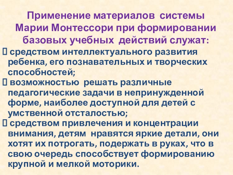 возможностью решать различные педагогические задачи в непринужденной форме, наиболее доступной для детей с умственной отсталостью;