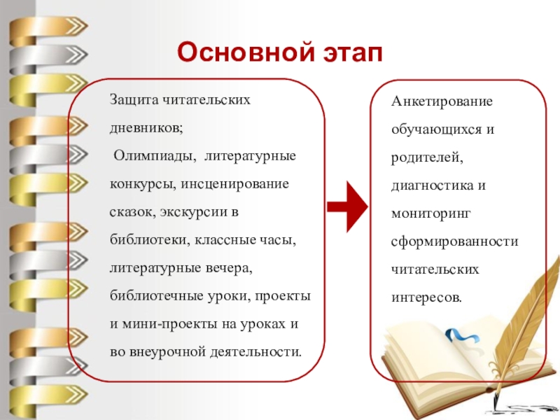 Анкетирование обучающихся и родителей, диагностика и мониторинг сформированности читательских интересов.