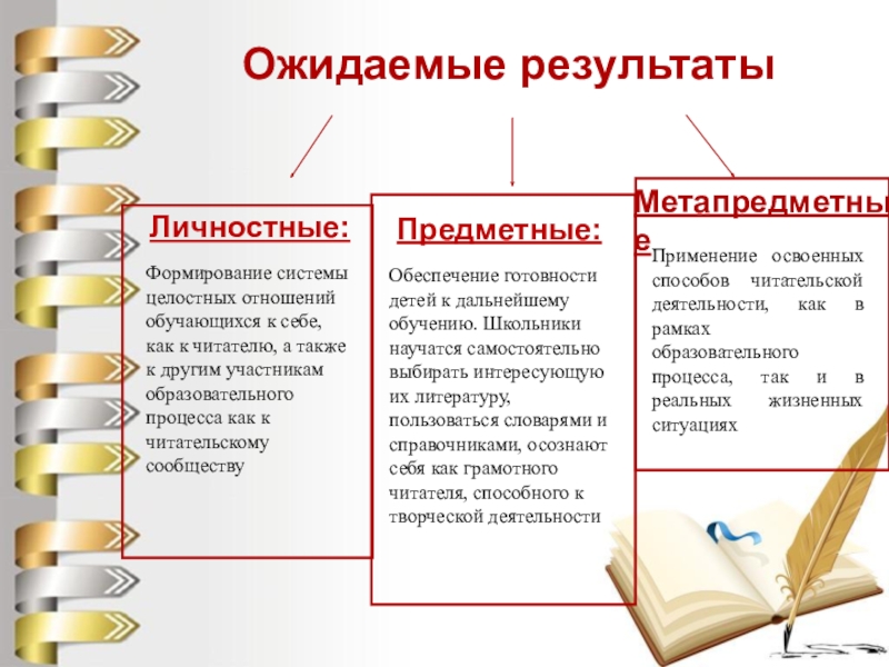 Обеспечение готовности детей к дальнейшему обучению. Школьники научатся самостоятельно выбирать интересующую их литературу, пользоваться словарями и справочниками, осознают себя как грамотного читателя, способного к творческой деятельности