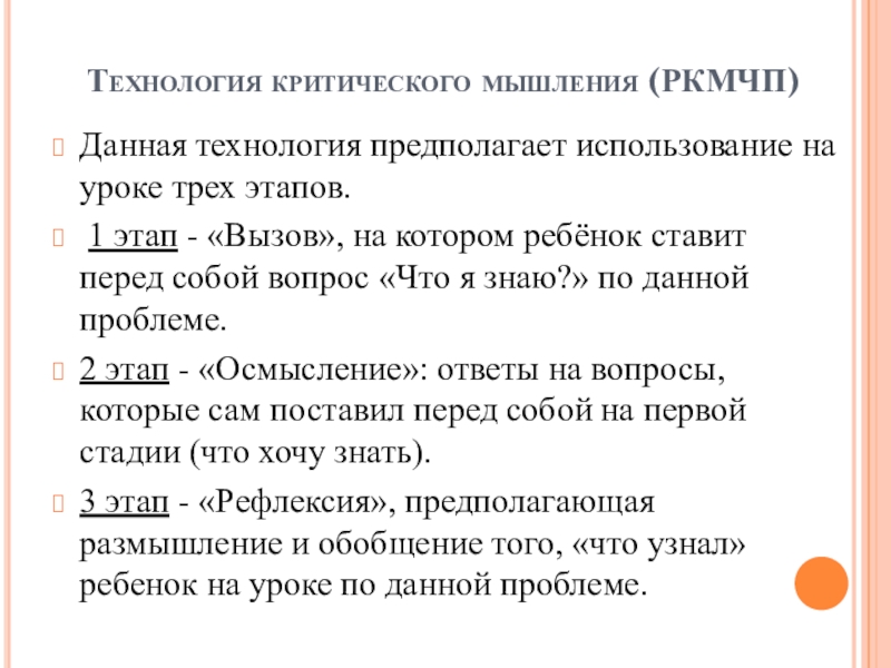 Слайд 10 Технология критического мышления (РКМЧП)