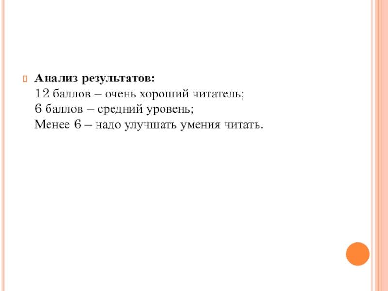 12 баллов – очень хороший читатель;