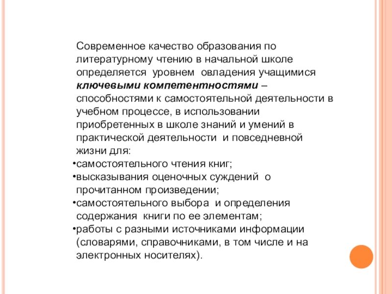 Слайд 3Современное качество образования по литературному чтению в начальной школе определяется уровнем