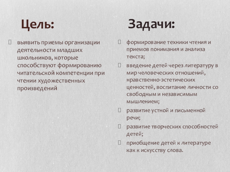 формирование техники чтения и приемов понимания и анализа текста;