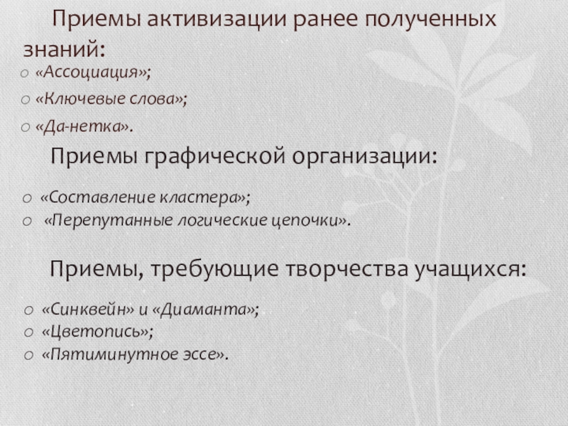 Приемы, требующие творчества учащихся: