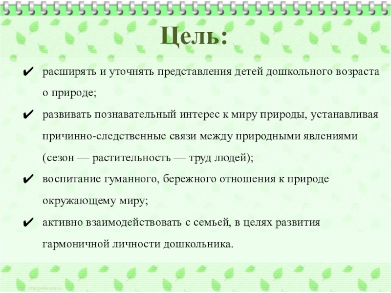 расширять и уточнять представления детей дошкольного возраста о природе;