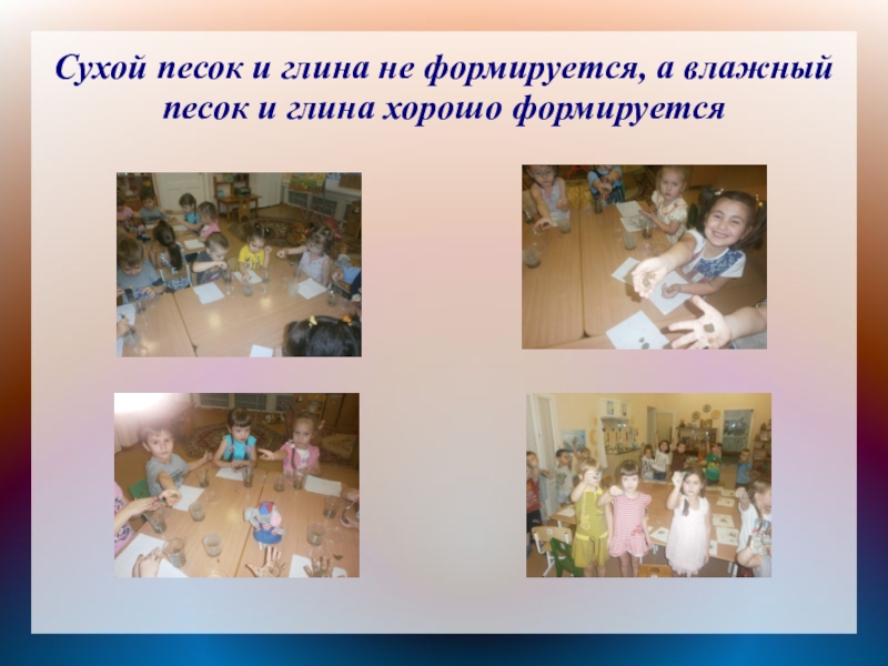 Слайд 22Сухой песок и глина не формируется, а влажный песок и глина