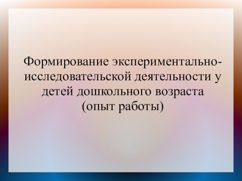 Слайд 1Формирование экспериментально-исследовательской деятельности у детей дошкольного возраста