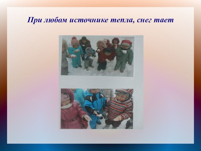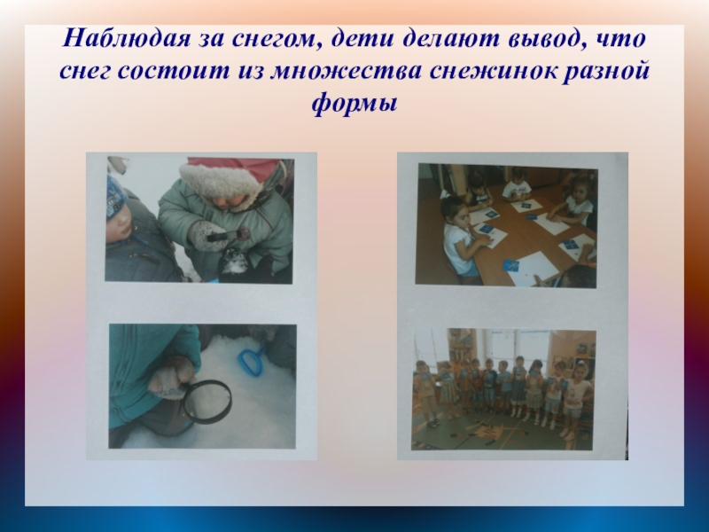 Слайд 15Наблюдая за снегом, дети делают вывод, что снег состоит из множества