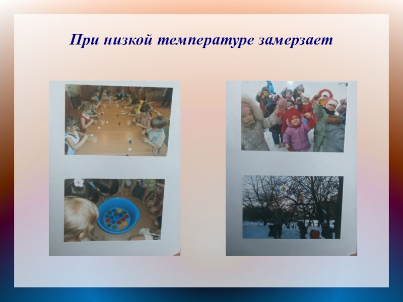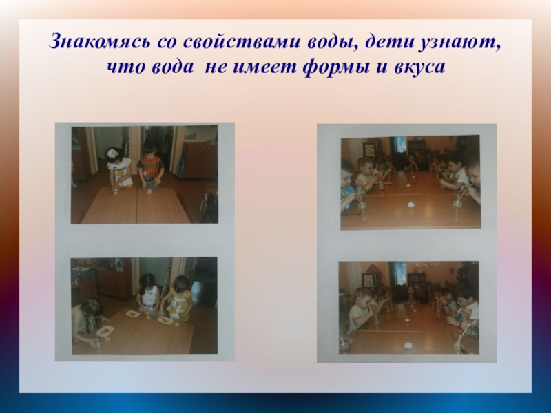 Слайд 11Знакомясь со свойствами воды, дети узнают, что вода не имеет формы