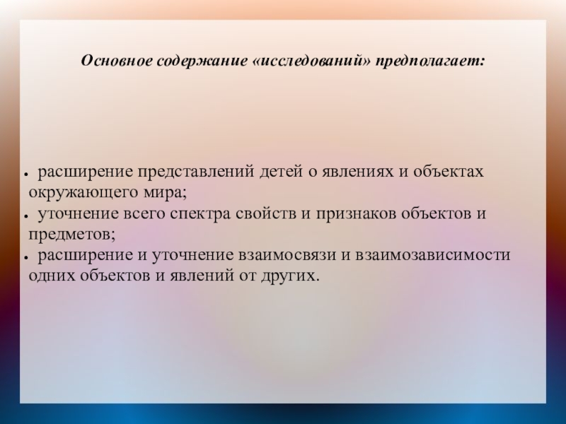 Слайд 8Основное содержание опытов по освоению детьми окружающего мира предполагает формирование у