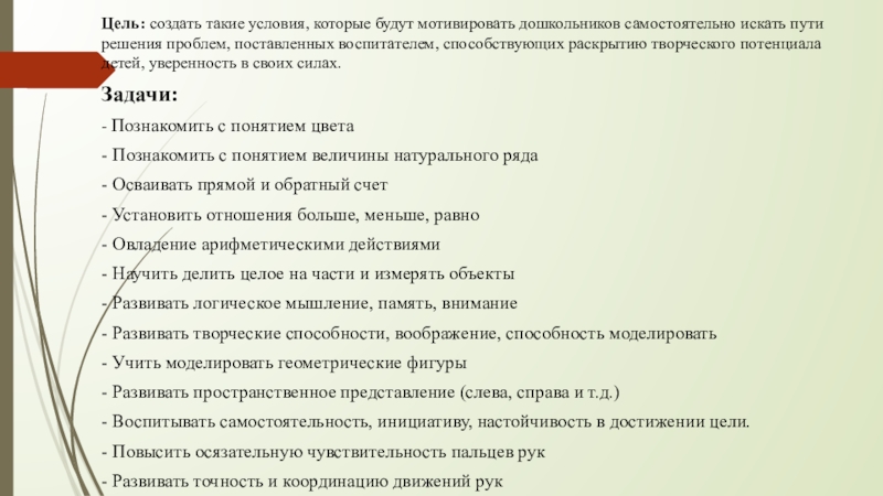 - Развивать творческие способности, воображение, способность моделировать