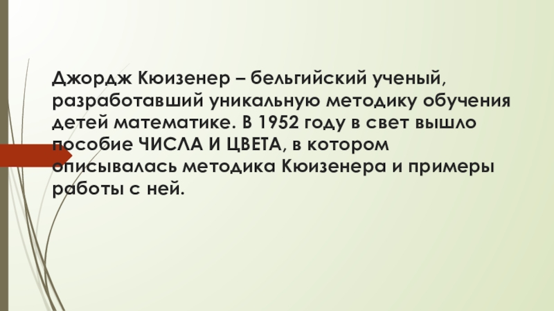 Слайд 2Джордж Кюизенер – бельгийский ученый, разработавший уникальную методику обучения детей математике.