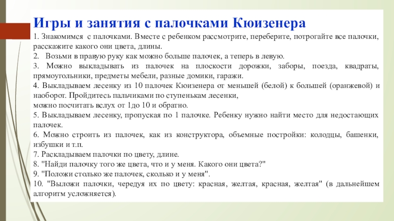 Слайд 6Игры и занятия с палочками Кюизенера