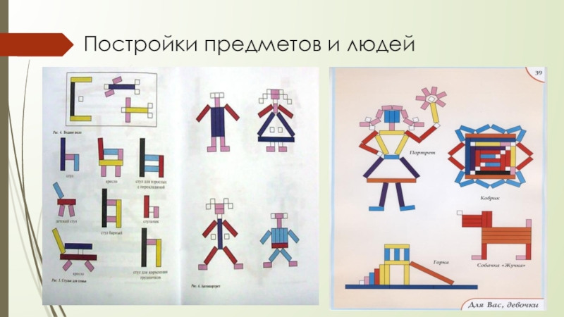 3. Можно выкладывать из палочек на плоскости дорожки, заборы, поезда, квадраты, прямоугольники, предметы мебели, разные домики, гаражи.