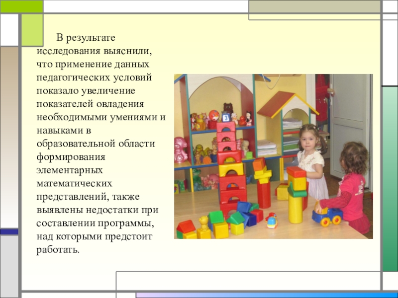 Умение выполнять действий с предметами с ориентацией на два свойства