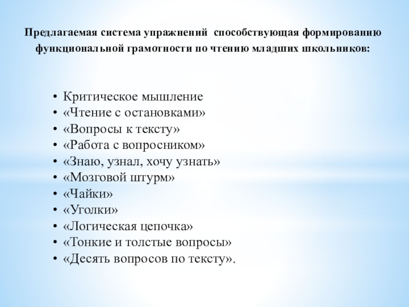 Рудик Г.А. и Жайтапова А. А в работе «Функциональная грамотность по чтению: тетрадь для самообразования и аутентичного оценивания» предложили тренинги, способствующие повышению функциональной грамотности по чтению, но разработаны для учащихся 15-летнего возраста.