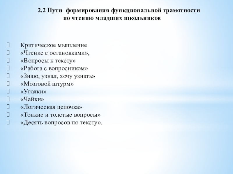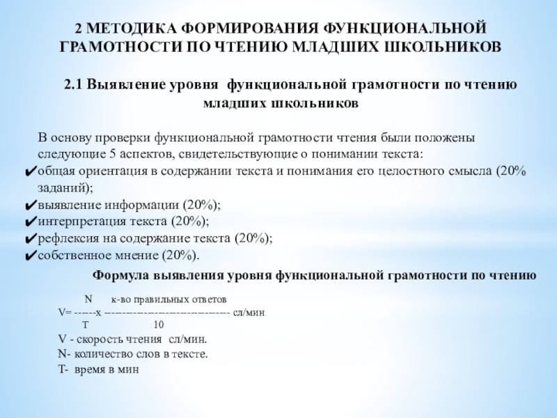 В основу проверки функциональной грамотности чтения были положены следующие 5 аспектов, свидетельствующие о понимании текста: