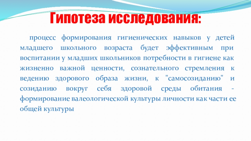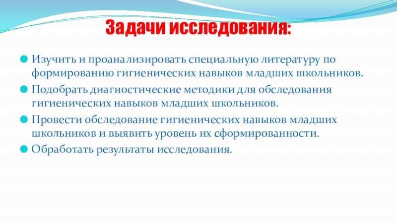 Предмет исследования: педагогическая работа по формированию гигиенических навыков младших школьников.
