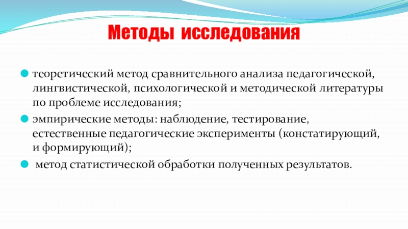 теоретический метод сравнительного анализа педагогической, лингвистической, психологической и методической литературы