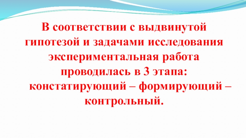 Слайд 8В соответствии с выдвинутой гипотезой и задачами исследования экспериментальная работа проводилась