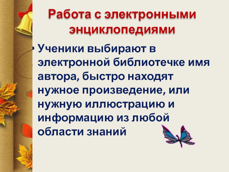 находят нужное произведение, или нужную иллюстрацию и информацию из любой области знаний