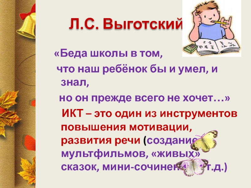 ИКТ – это один из инструментов повышения мотивации, развития речи (создание мультфильмов, «живых» сказок, мини-сочинений и т.д.)