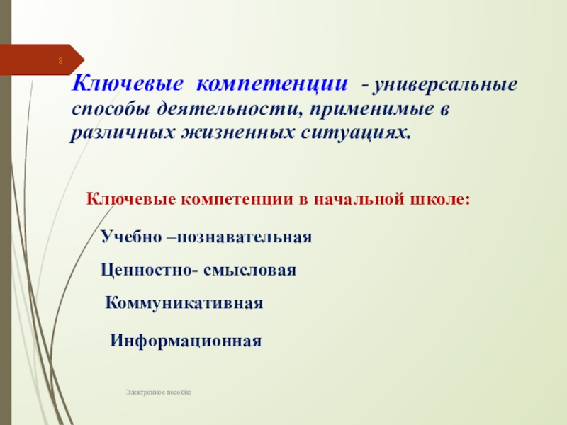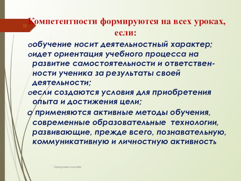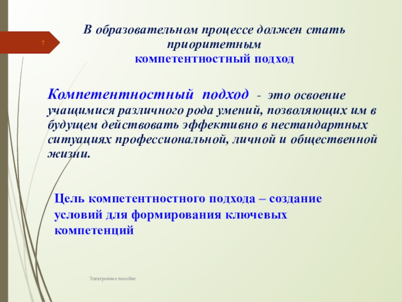 Цель компетентностного подхода – создание условий для формирования ключевых компетенций