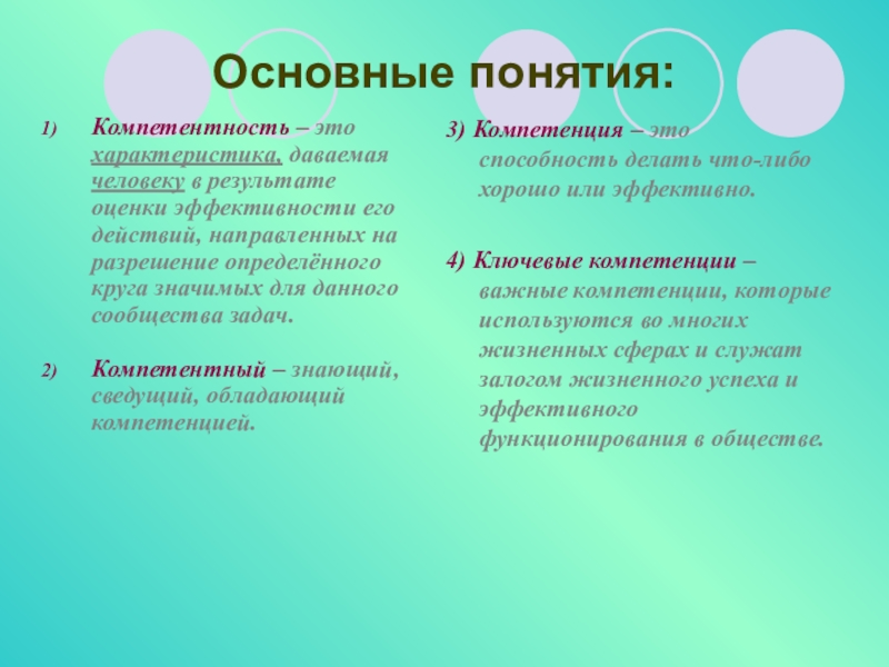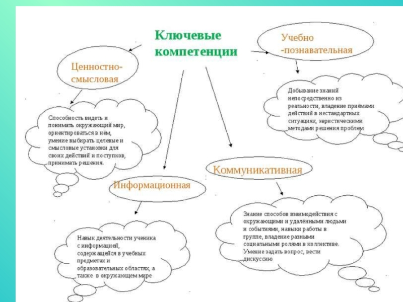 4) Ключевые компетенции – важные компетенции, которые используются во многих жизненных сферах и служат залогом жизненного успеха и эффективного функционирования в обществе.