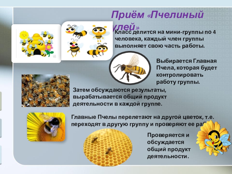 Выбирается Главная Пчела, которая будет контролировать работу группы.