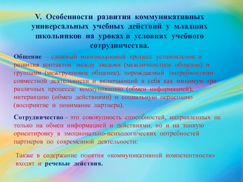 Также в содержание понятия «коммуникативной компетентности» входят и речевые действия.