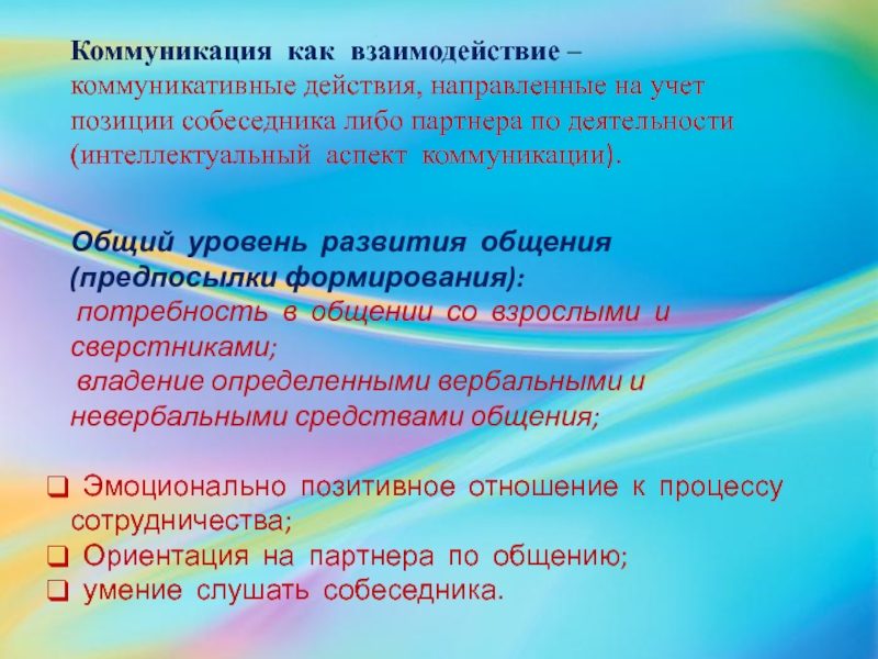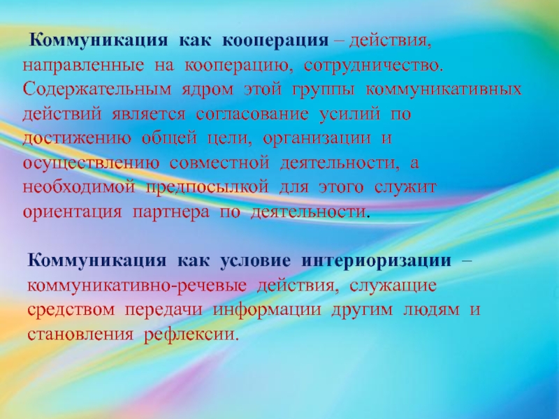 Сотрудничество – это совокупность способностей, направленных не только на обмен информацией и действиями, но и на тонкую ориентировку в эмоционально-психологических потребностей партнеров по современной деятельности: