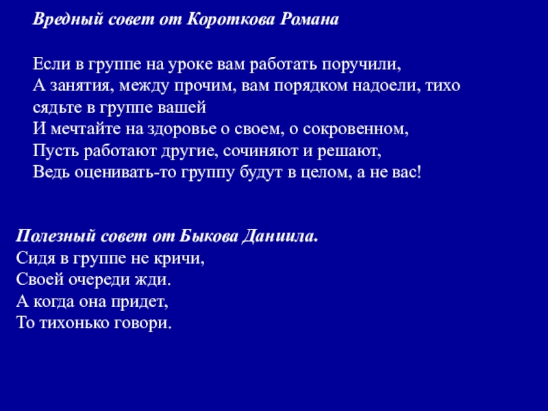 Полезный совет от Быкова Даниила.