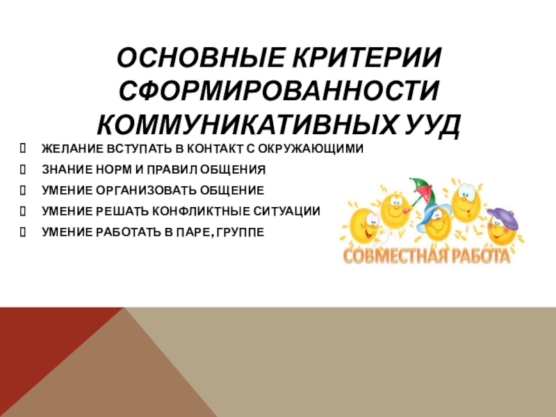Слайд 12ОСНОВНЫЕ КРИТЕРИИ СФОРМИРОВАННОСТИ КОММУНИКАТИВНЫХ УУД