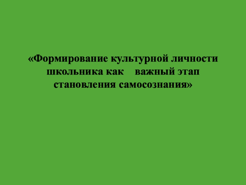 Слайд 1«Формирование культурной личности школьника как важный этап становления самосознания»