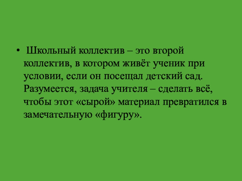 Школьный коллектив – это второй коллектив, в котором живёт ученик при условии, если он посещал детский