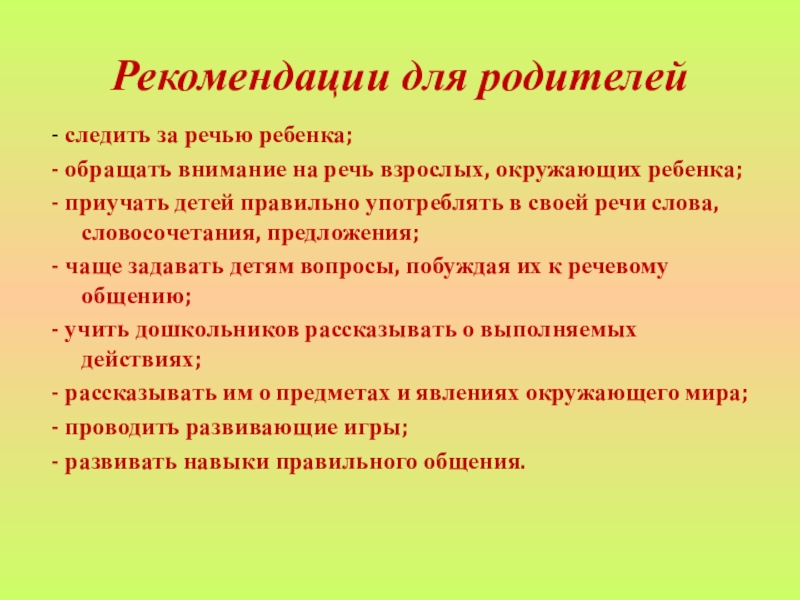 - чаще задавать детям вопросы, побуждая их к речевому общению;